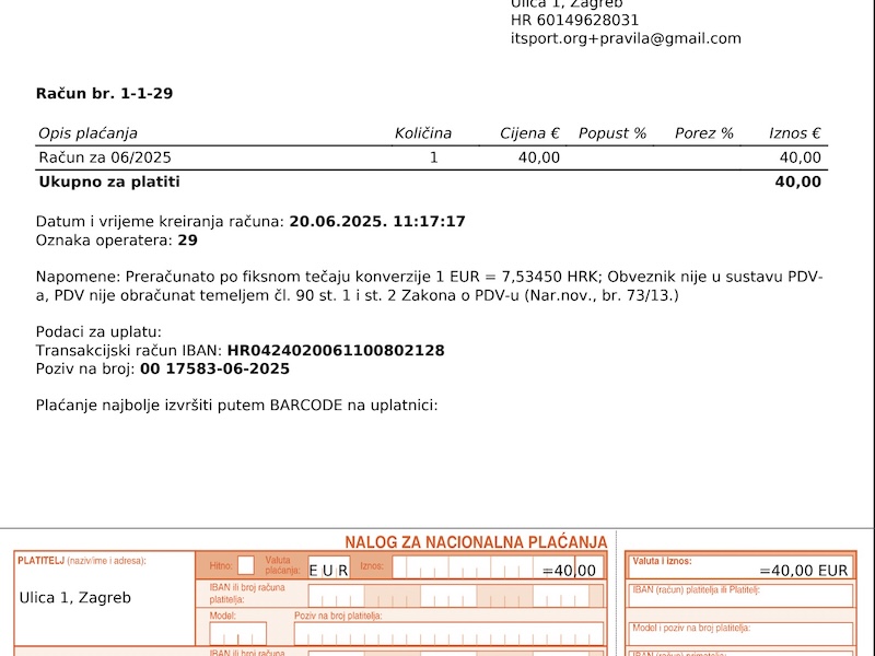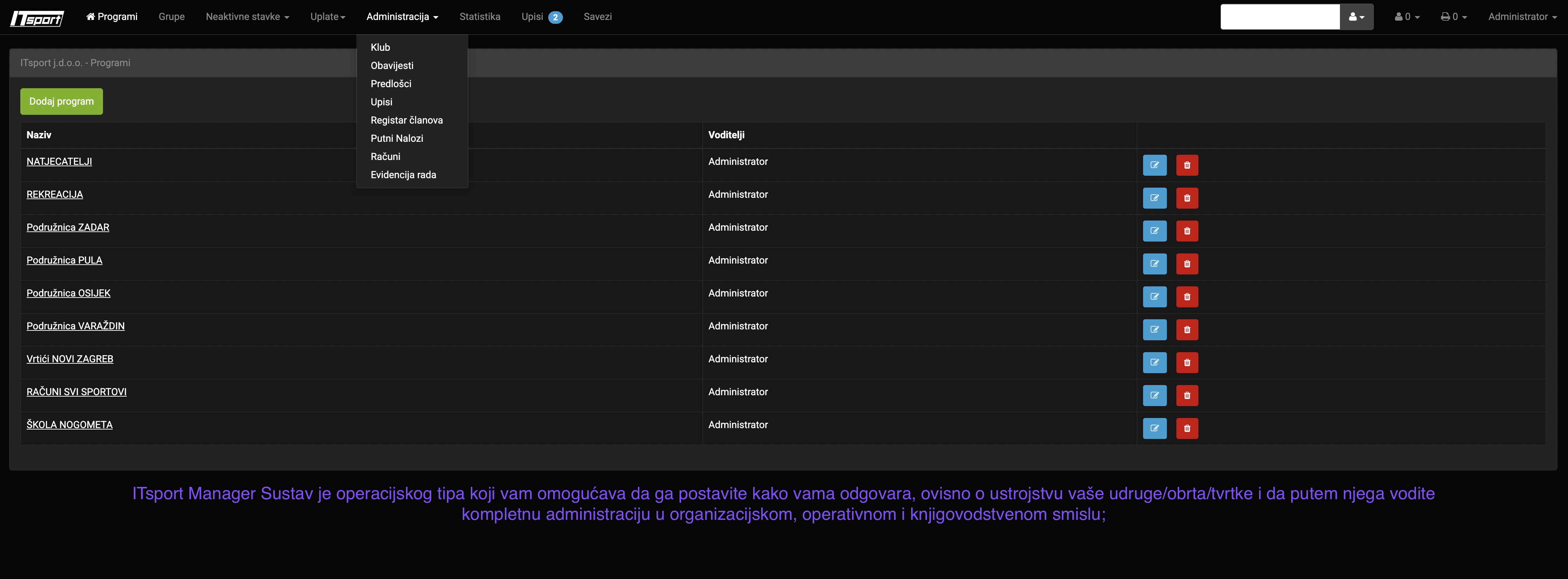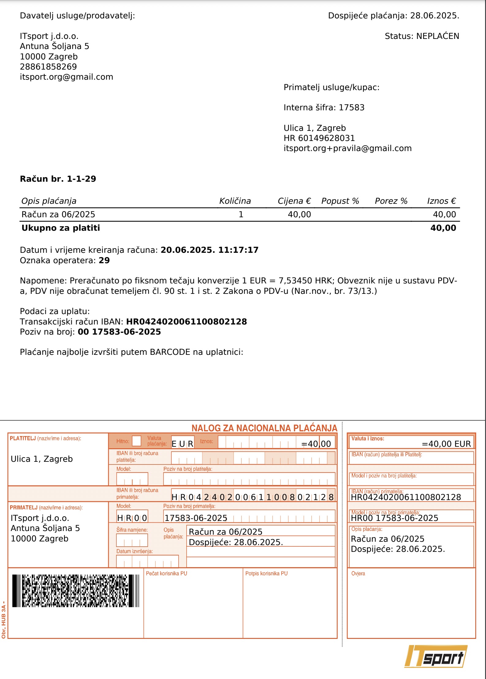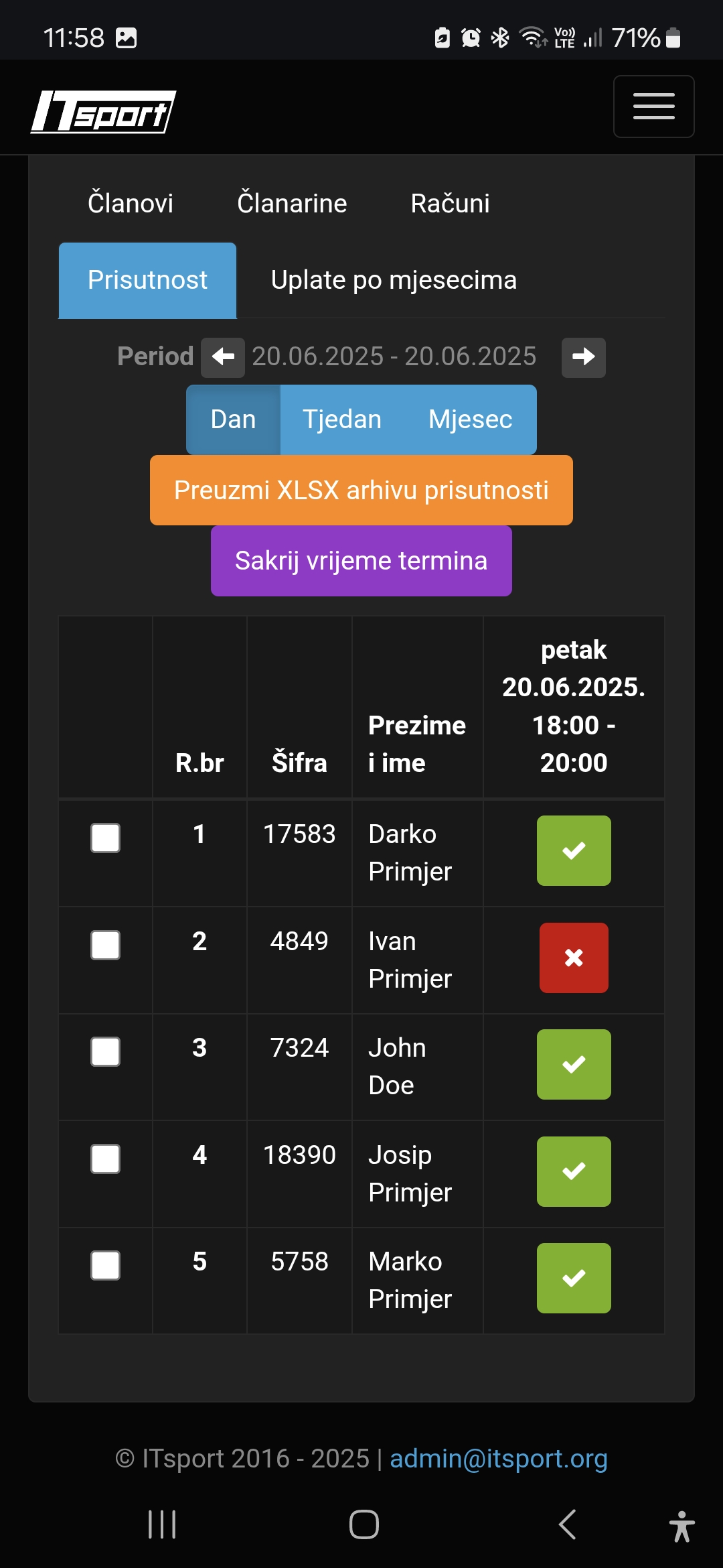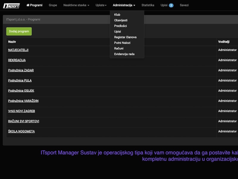 Registracija je jednostavna i besplatna. Registrirati se mogu samo pravne osobe sa stvarnim podacima. Nakon registracije dobit ćete link na email za postavljanje lozinke i odmah možete isprobati i koristiti sustav. Probni rok je mjesec dana i potpuno je besplatan i bez ikakve obaveze. Isprobajte i uvjerite se u jednostavnost, kvalitetu i korisnost ITsport sustava!
