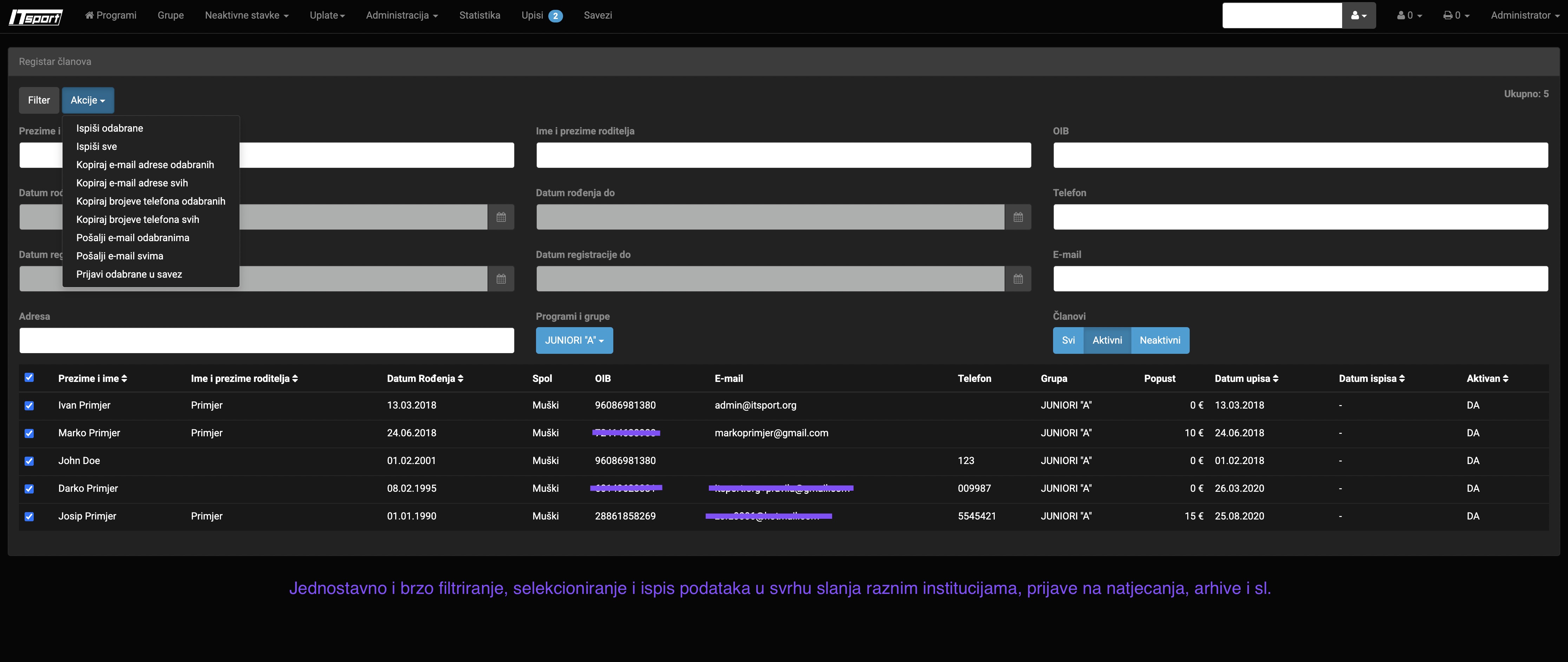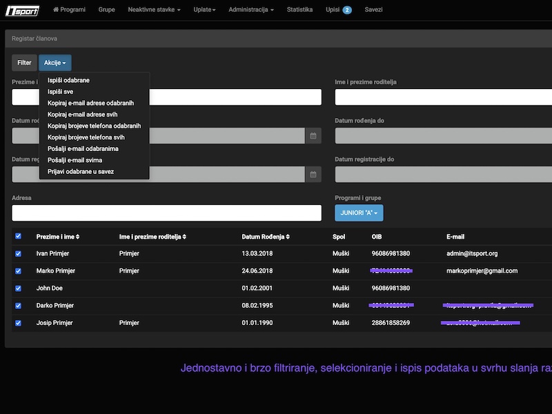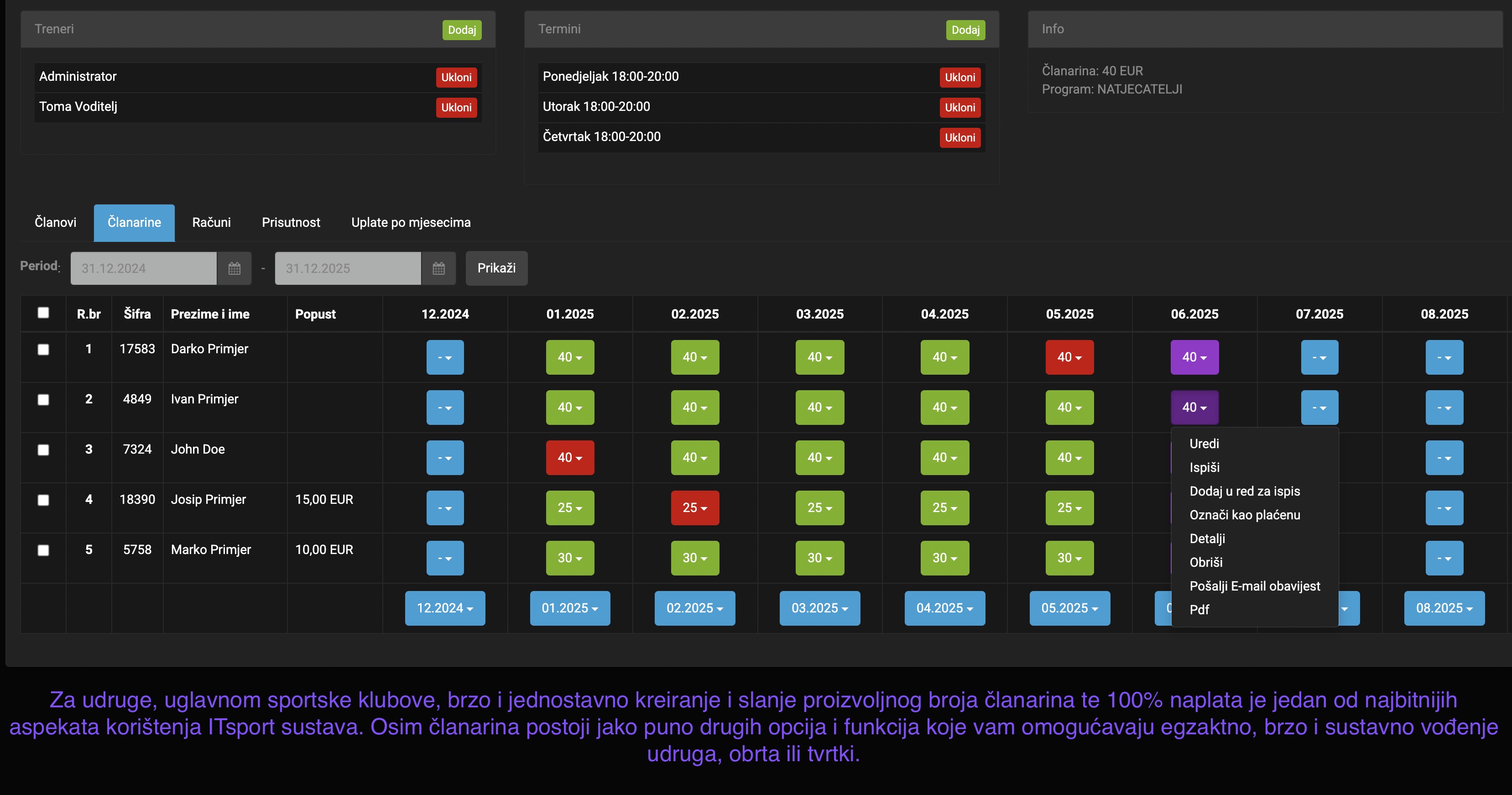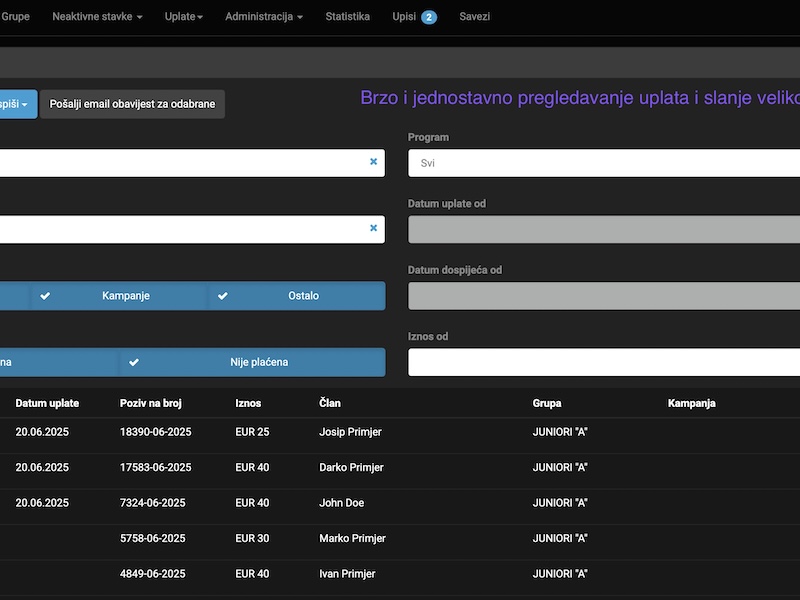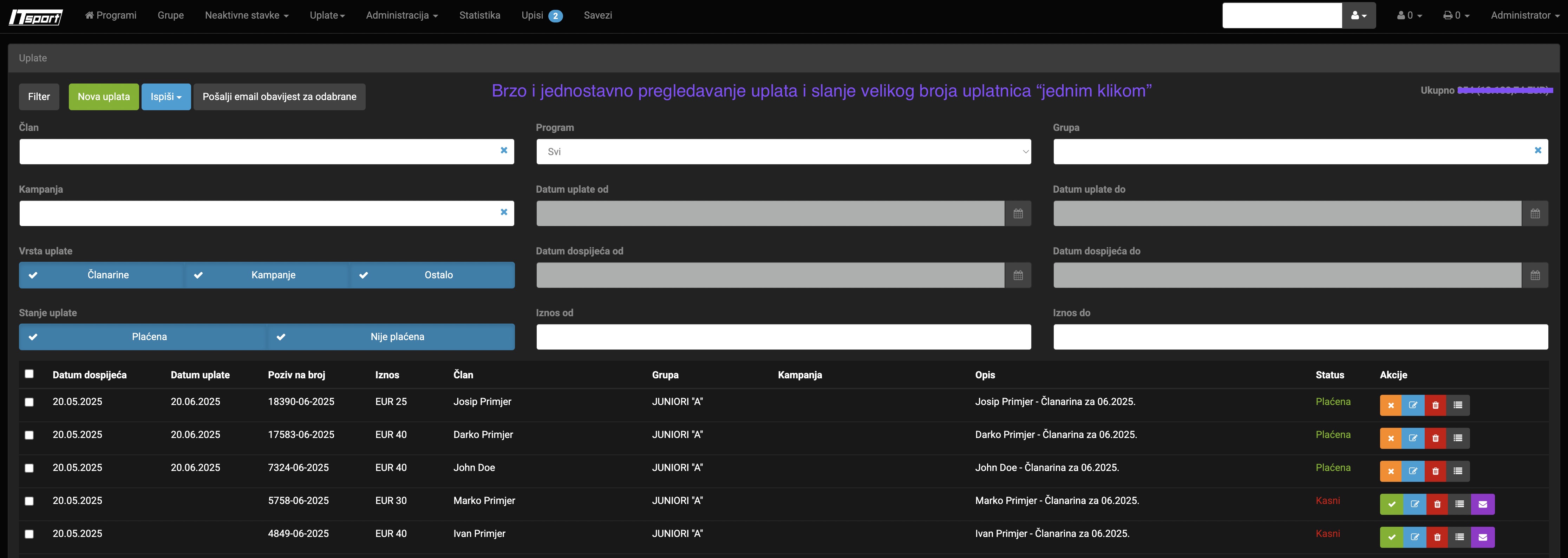 Membership modul osmišljen je da klubovima i trenerima smanji administrativni posao, a članovima i roditeljima olakša plaćanje i komunikaciju. Sve je dostupno online, sigurno i u skladu s GDPR-om. Podaci su maksimalno zaštićeni i jedino dostupni voditeljima organizacija koji s njima rade što žele i trebaju. Sustav ne koristi nikakve reklame i oglase.